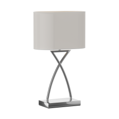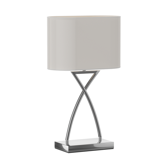 "BONNET SILVER" z kolekcji TANGO to idealna propozycja do nowoczesnych wnętrz, utrzymanych w stylu stonowanej elegancji. Połączenie podstawy w kolorze srebrnym oraz białego klosza tworzy wrażenie harmonii i estetyki, jednocześnie idealnie wtapiając się w aranżację wnętrza. Ta propozycja to prawdziwa perełka wśród minimalistycznych lamp.Elegancka lampa stołowa wyposażona została w podstawę w kolorze srebrnym, o gładkiej, błyszczącej powierzchni. Dzięki temu twórcy projektu jeszcze lepiej wyeksponowali samą formę, przywodzącą na myśl literę "X", w której środek ciężkości przesunięty został ku górze. W ten sposób lampa zyskała przyjemną dla oka, lekką i smukłą sylwetkę.Nowoczesna lampa do białego salonuW nowoczesnych wnętrzach króluje często biel we wszystkich odcieniach, a także korespondujące z nią, delikatne szarości. Stylowe oświetlenie może znakomicie podkreślić dekoracyjne walory tak urządzonych apartamentów. W przypadku tej lampy wyróżnikiem okazuje się jednak nie tylko kolor klosza - z zewnątrz białego, ze srebrnym, papierowym wypełnieniem - ale także kształt, zbliżający się do prostokąta.Właśnie dzięki prostokątnej podstawie i wąskiemu kloszowi, elegancka lampa zajmuje niewiele miejsca. Można ustawić ją w wąskiej wnęce, na parapecie, na kominku czy przy ścianie. Tak zaprojektowane oświetlenie daje Ci zdecydowanie większą swobodę aranżacji.