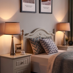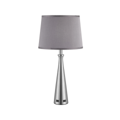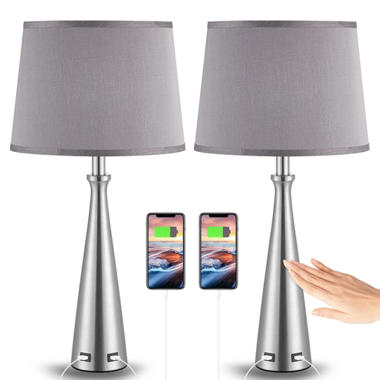 Te nowoczesne lampy o nieco futurystycznym wyglądzie będą stanowiły niezwykle efektowną ozdobę sypialni, salonu, czy też apartamentu hotelowego. Warto ustawić je na szafkach nocnych po obu stronach łóżka - albo wyeksponować na stolikach ustawionych symetrycznie przy obu bokach kanapy w pokoju dziennym.Ultranowoczesny design nie pojawił się tu przypadkowo. Twórcy tego modelu zadbali bowiem o to, aby - zgodnie z aktualnie panującymi trendami w branży technologicznej - wyposażyć lampy w dodatkowe funkcjonalności. Dlatego są one nie tylko źródłem światła, ale także... nowoczesnymi ładowarkami do telefonów i innych niewielkich urządzeń elektronicznych.Lampa nocna, która staje się gadżetem W podstawie każdej z lamp znalazło się miejsce na dwa złącza USB 5V / 2A (łącznie dostępne są zatem cztery gniazda). Możliwość ładowania telefonu bezpośrednio na nocnym stoliku jest niezwykle wygodna - ma jednak również duże znaczenie praktyczne dla osób, które z reguły spędzają sporo czasu na poszukiwanie wiecznie gubiących się w domu ładowarek.Dla jeszcze większego komfortu, prezentowany model lamp sterowany jest nie poprzez włącznik łańcuszkowy (jak w dwóch pozostałych modelach z tej serii), a poprzez dotyk. Wystarczy dotknąć podstawy lampy, aby błyskawicznie ją włączyć lub wyłączyć. W parze z przemyślanymi rozwiązaniami technicznymi, idzie również elegancja - lampy oferowane są w stonowanej kolorystyce, z przewagą szarości, z chromowanymi wykończeniami.