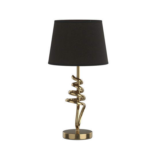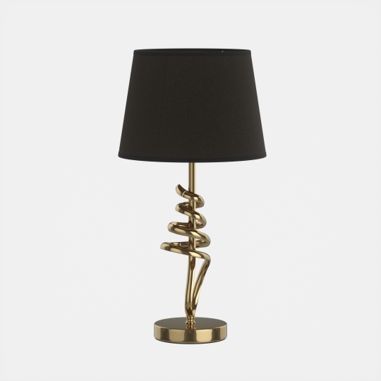 Lampa utrzymana w stylu GLAMOUR, inspirowana nowoczesną sztuką rzeźbiarską. Umieszczona na podstawie o fantazyjnym, zgeometryzowanym kształcie. Połączenie matowego, czarnego klosza i błyszczącej stopki w kolorze złotym sprawia, że elegancka lampa stołowa "RIBBON" stanie się ozdobą salonu, gabinetu lub jadalni. Tym, co wyróżnia model "RIBBON" jest asymetryczna, ciekawie zawijana dekoracja. Przywodzi ona na myśl minimalistyczną rzeźbę albo... odręczny szkic, któremu ktoś nadał przestrzenną formę. Ten jeden detal wystarczy, aby nowoczesna lampa stołowa zyskała lekkość i dynamikę. Gdy tylko naciśniesz włącznik, splecione linie ożyją ciekawą grą światła i cienia. Stylowa lampa do eleganckich wnętrzKlosz lampy stołowej wykonany został z bawełnianej tkaniny w kolorze czarnym - jego matowa powierzchnia tworzy kontrast dla gładkiej, błyszczącej podstawy. Natomiast wnętrze pokrywa złote, odblaskowe wypełnienie z papieru. Właśnie dzięki niemu lampa roztacza wokół przyjemne dla oka, ciepłe światło. Model "RIBBON" jest tak efektowny, że znajdzie swoje miejsce w nowoczesnym salonie, kameralnym gabinecie, reprezentacyjnej jadalni albo stylowej sypialni. Będzie wyglądać znakomicie jako samodzielna dekoracja lub w otoczeniu innych, minimalistycznych dodatków, w tym dzieł sztuki współczesnej.Sugerowana barwa światła: 2200K - 3500K, LED Max 5W, 500 lm