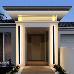 Nowoczesna lampa zewnętrzna, która... wcale nie wygląda jak lampa! Przypomina raczej intrygujący, podświetlony mural, namalowany na ścianie przez artystę-wizjonera. Tak inspirujące źródło światła może ożywić niejedną przestrzeń, przesądzić o jej charakterze i stać się - w wyobraźni architektów wnętrz oraz projektantów ogrodów - "kropką nad i", wieńczącą dzieło.Pionowy kinkiet zewnętrzny dostępny jest, co niezwykle istotne, w kilku różnych długościach. W zależności zatem od konkretnej idei, w projekcie oświetlenia można wykorzystać albo lampy o takich samych wymiarach, albo - wręcz przeciwnie - zróżnicować je, by uzyskać dodatkowe efekty dekoracyjne.Oświetlenie zewnętrzne w kolorze czerni i bieli Nowoczesna architektura lubi kontrasty, a zestawienie czerni z bielą - podkreślone dodatkowo przez światło rozproszone wokół lampy - zyskuje szczególnie wyrazisty charakter. Nie oznacza to jednak, że zewnętrzna lampa nadaje się wyłącznie do supernowoczesnych rezydencji czy obiektów komercyjnych. Wręcz przeciwnie - z powodzeniem da się włączyć ją również w projekt oświetlenia klasycznych budowli (w tym nawet modernistycznych), aby wizualnie odświeżyć ich formę.Lampa zewnętrzna wykonana została z żelaza i tworzywa akrylowego, dzięki czemu można wyeksponować ją nawet na odsłoniętych ścianach czy frontach, bez obaw, że zostanie uszkodzona przez deszcz lub śnieg. Wyposażona w zintegrowane źródło światła LED, pobiera niewiele energii, nawet przy długotrwałym użytkowaniu.