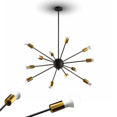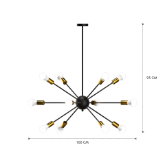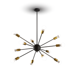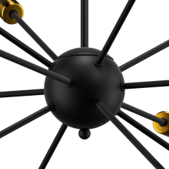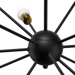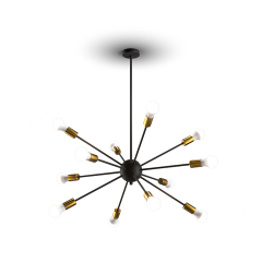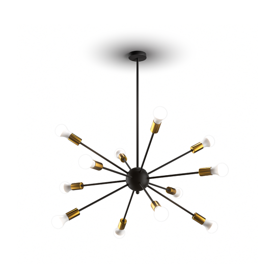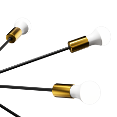 Rzut oka na model VILLEY sprawia, że wyobraźnia przywołuje z pamięci wiele różnych skojarzeń. Jednym sferyczna konstrukcja może przywodzić na myśl układ planet lub modele cząstek fizycznych, innym - strukturę zaczerpniętą ze świata roślin, np. z dmuchawców. I każde takie skojarzenie będzie prawidłowe, bo ta wisząca lampa jest naprawdę niezwykła.Zamiast tradycyjnego klosza z kilkoma linearnie ułożonymi punktami światła, w modelu VILLEY otrzymujemy aż 12 punktów świetlnych. Co ciekawe, są one skierowane w różne strony i usytuowane na różnej długości mocowaniach. W ten sposób projektanci lampy uzyskali formę sferyczną, która odbiega od regularnej kuli, a tym samym jeszcze wyraźniej zbliża się do inspiracji naturą.Wisząca lampa w stylu nowoczesnymModel VILLEY dopracowany jest w szczegółach. W centralnej części konstrukcji znajduje się baza w kształcie kuli w kolorze czarnym, do której zbiegają się wszystkie ramiona. Identyczna metalowa rurka łączy również kulę z mocowaniem lampy sufitowej - w ten sposób całość zyskuje harmonijny charakter.Czerń elementów konstrukcyjnych i świecąca biel żarówek wymagała dopełnienia. Dlatego twórcy projektu zdecydowali się na zastosowanie oprawek ze złotymi wykończeniami - eleganckich, a jednocześnie podkreślających świetlistość i lekkość wiszącej lampy.